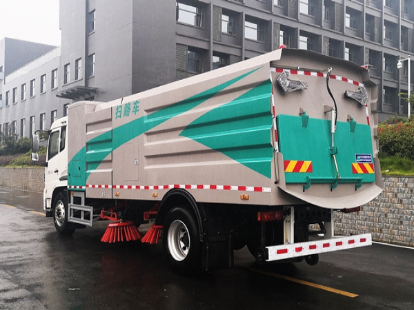 5、左右立扫为双扫盘。开放式液压系统驱动左右立扫升降、左右扫盘旋转、吸嘴升降、垃圾箱后门开闭、垃圾箱倾翻复位等机械动作。